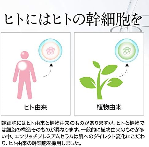 一般的に植物由来のものが多い中、エンリッチプレミアムセラムは肌へのダイレクトな変化にこだわり、ヒト由来の幹細胞を採用しました。