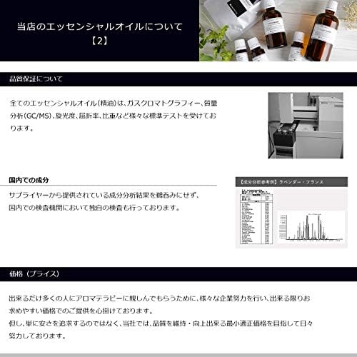 全てのエッセンシャルオイル(精油)は、ガスクロマトグラフィー、質量分析(GC/MS)、旋光度、屈折率、比重など様々な標準テストを受けております。