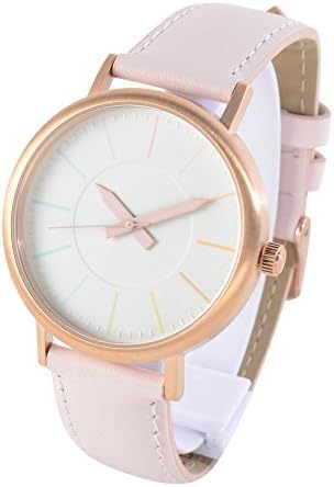 流行のシンプルなデザインと、白地の文字盤にカラフルなインデックスがポイント。