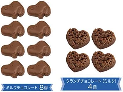 可愛いスヌーピーの顔型チョコレート8個と、ハート型のクランチチョコレートが4個の合計12個入った手提げ袋のギフトです。バレンタインデーにもぴったりです♪
