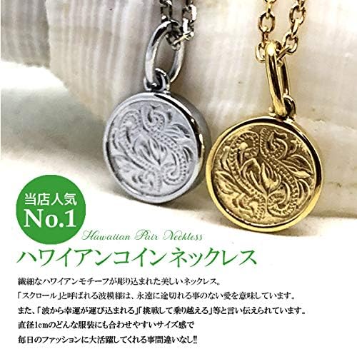 当店人気No.1のコインネックレス。繊細なハワイアンモチーフが彫り込まれた美しいネックレス。 「スクロール」と呼ばれる波模様は、永遠に途切れる事のない愛を意味しています。 また、「波から幸運が運び込まれる」「挑戦して乗り越える」等と言い伝えられています。 直径1cmのどんな服装にも合わせやすいサイズ感で 毎日のファッションに大活躍してくれる事間違いなし!!