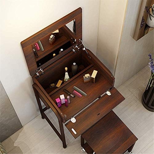 Double use:One table two use,This is a beautiful daily cosmetic storage makeup table when open the cover,It is also a simple table or laptop desk when close the cover.