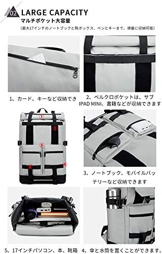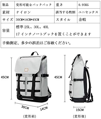 書籍、衣類、書類などを保管することができる大容量のメインバッグ、短期間の旅行のストレージ、心配することなく、トップは折り畳むことができる、容量は25~40Lを調整することができます。ベーシックな物からちょっと個性的なもの 大容量 メンズ リュックサック まで。 男女問わず使えるデザインで毎日の通学・通勤はもちろん、休日のお出掛けまで幅広く活躍。 ビジネスとカジュアル兼用、仕事、ビジネス、通学、旅行、週末、ショッピング、登山などのアウトドア活動にも使える大容量・万 能 型バックパックです。