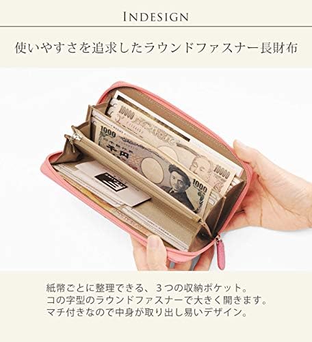 コの字型のラウンドファスナーで大きく開きます。マチ付きなので中身が取り出し易いデザイン。