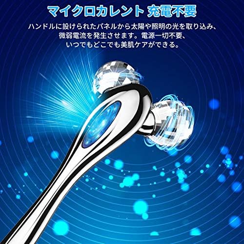 ♛「マイクロカレント」はハンドル部分にはソーラーパネルがあり、取り込まれた光が微弱電流のマイクロカレントを発生させます。微弱電流を試す方法はスマホの画面をローラしてください。などが効率的に肌に刺激を与えます。美容効果に優れているので顔だけでなくボディにも使用可能。グラデーションなデザインなので外観に美しさを加えられました。