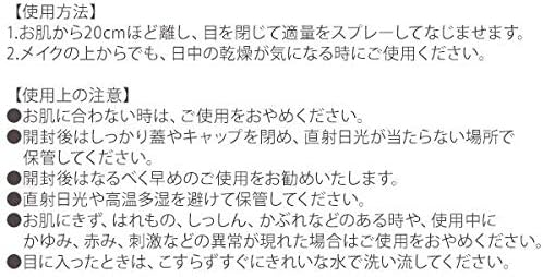 鉱物油・着色料無配合のエッセンスミスト使いやすいスプレー式です植物由来美容成分を中心にミネラル成分など、お肌に潤い・ハリ・ツヤなどを与える美容成分をたっぷり配合日差しやエアコンなどで乾燥したお肌を、爽やかな潤いで満たしますまた、メイクに潤いを与えることで、乾燥による化粧崩れを防止爽やかなシトラスの香りで、気分もリフレッシュ
