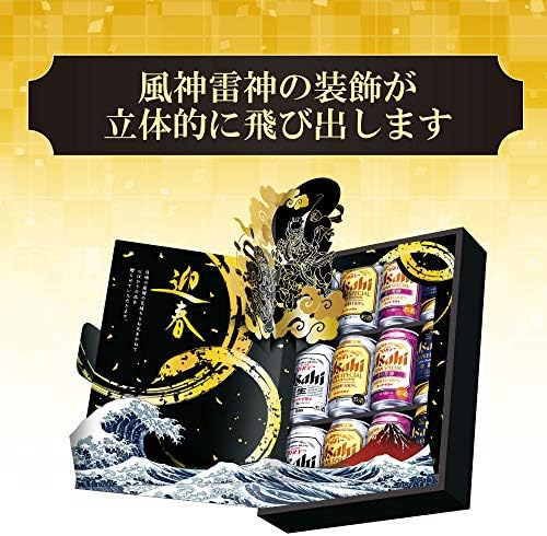 4種類のビールが楽しめる、贈り物や歳暮にオススメのビールギフトです。風神雷神と富士山をあしらった迫力あるデザインでお年賀(新年のご挨拶)にも最適です。「アサヒスーパードライ」、「ドライプレミアム豊穣」が各3本、ギフト限定の「アサヒスーパードライ ジャパンスペシャル」、「アサヒスーパードライジャパンスペシャル香り芳醇」が各3本、計12本が楽しめます。