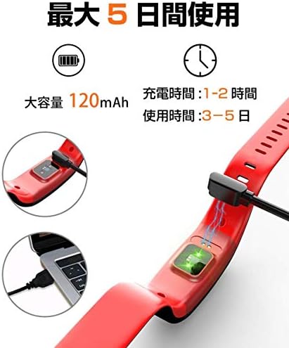 【120mAh大容量】スマートブレスレット市場に珍しい120mAh電池容量を利用して、使用時間は3-5日、最大待機時間は20日まで、駆動時間は大幅に向上します。【IP67等級の防水性能】IP67防水レベル、汗も雨も防ぎ、手を洗いにご安心ください。