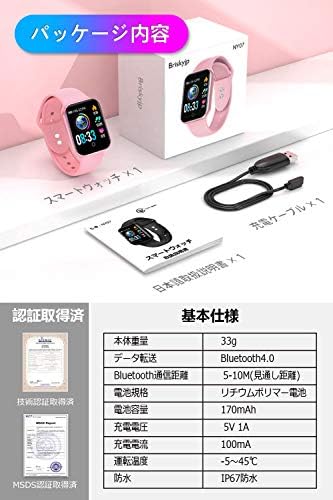【IP67防水&超長持ち】IP67級認証取得したので、日常の手洗う、雨、汗などは勿論、水泳の時に安心使えます。(完全防水ではない為、潜水、または温泉など湯気溢れる場合に避けてください。)170mAh大容量バッテリー搭載によって、約2時間充電すれば最大7日使用可能です!