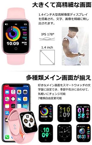 【令和最新版・大字幕】 スマートウォッチ レディース 睡眠計測 IP67防水 スポーツウォッチ 活動量計 GPS運動記録 多機能腕時計 電話着信/SMS/Lineなど通知 腕時計 長座注意 日本語説明書 iPhone/Android対応 (ローズゴールド)