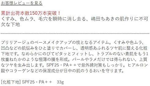 “【公式】 ブリリアージュ メイクアップベース フェイスレスポンサー SPF25・PA++ 化粧下地 [嶋田ちあきプロデュースブランド]” の口コミを投稿します