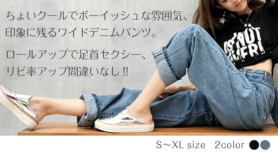 ゆったりシルエットのタックパンツ♪ コーディネイトに困ったときに履けるデニムジーンズ。 オールシーズン(春夏秋冬)履いて頂ける手放せたくないリピート率上がるボトムになるでしょう。 学生さんからデートや女子会、主婦の方やママ友とのお出掛け、子供の運動会やハイキング、公園などさまざまなシーンで活躍できます。 フェスや音楽祭、コンサートにも友達とお揃いや親子で色違いで幅広く履いていただけます。 10代、20代、30代、40代、50代の方に履いていただけます。 154cmスタッフはMサイズ、161cmスタッフはLサイズがジャストサイズです。