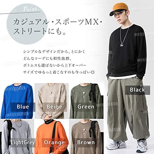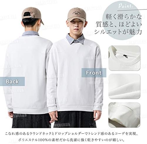 【軽く滑らかな質感と、ほどよいシルエットが魅力】こなれ感のあるラウンドネックとドロップショルダ―でトレンド感のあるコーデを実現。チェーンネックレスやペンダントに指輪、腕時計等のアクセサリーにも合うメンズ服のAmazonランキングでも人気のお勧めトレーナーです。旦那様・彼氏へのプレゼントでもオススメです◎