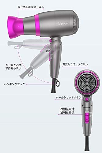 Ribivualヘアドライヤーは折り畳みで、45°と90°の角度が実現でき。