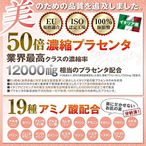 EU規制下のイタリア産の高品質な豚プラセンタを50倍に濃縮し、高含有12,000mg/日を実現。
