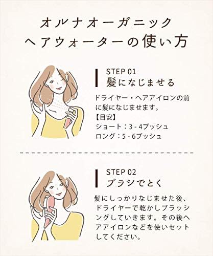 1、「髪になじませる」 ショート:3~4プッシュ ロング:5~6プッシュ しっかりと髪になじませます。 2、「ブラシでとく」 髪をドライヤーで乾かしながら ブラッシングしていきます。