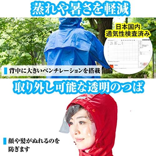 ●【 高い縫製クオリティー 】 第三者検品を行い、縫製を丁寧に行っています。 ●【 細かい機能 】 雨の侵入を防ぐ細かい機能が充実しています。 ●【 別売りレインバイザーと使える 】 当社が開発した別売りのレインバイザーと併用すると、更にぬれにくくなります。 ●【 フリーサイズ 】 170cmくらいまでの身長をカバーできるフリーサイズです。