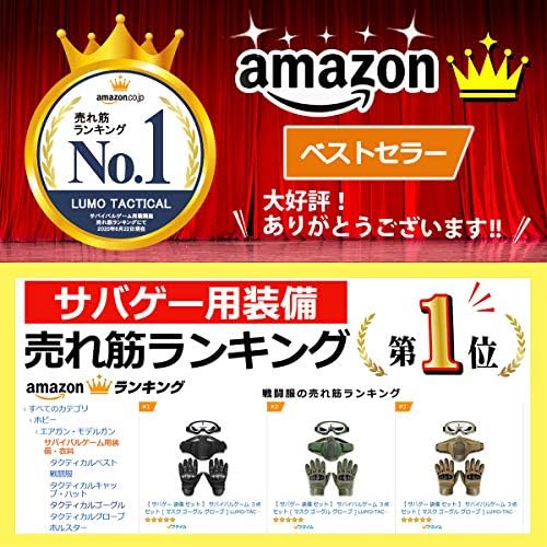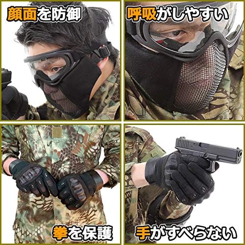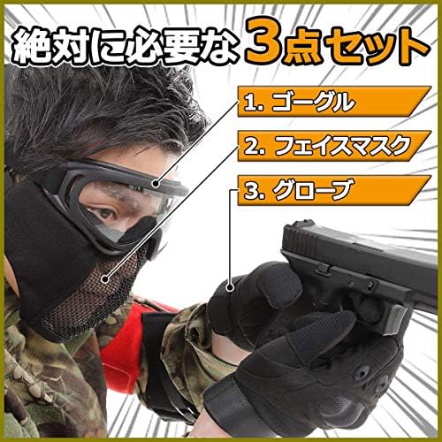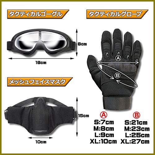 【 セット内容 】 ① タクティカルゴーグル ② ハーフメッシュ フェイスガード ③ タクティカルグローブ ( S、M、L、XL からサイズ選択可)