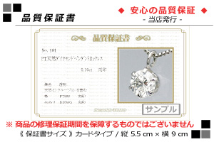 お客様に安心してお買い物をしていただけるよう商品の品質を保証するために【DIAMOND WORLD】が独自に発行しているものです。
