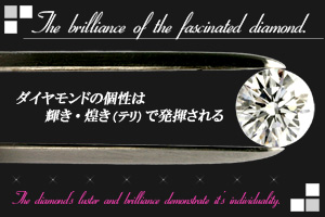 人間が一人として、同じ人間が存在することがないのと同様に、天然ダイヤモンドも一粒一粒、Carat(大きさ)・Color(色味)・Clarity(透明度)・Cut(研磨)、そして、4Cだけでは測り知れないダイヤモンドの輝き・煌き(テリ)があります。