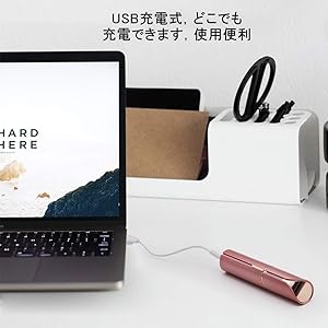 【充電式】USBによる充電式なので、電池がなくて困るということがありません。外出先でも便利! 【持ち運び簡単】この脱毛器は軽く、コード不要なリップスティックのようなデザインです。コンパクトで家でも外出先でも簡単に使えます。