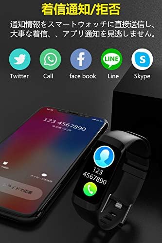【便利な通知機能】電話、SMS(Line、Skype、Facebook、Twitter、Instagram、Whatsappなどのアプリ)通知は、バイブでお知らせします。大切な連絡を見逃しません。電話番号、お名前、メッセージ、または対応するSNSのアイコンが表示されます。そして、会議中や電車中に、電話を受けることが不便である場合、3秒を長押しすると、拒否できます。それに、アラーム機能も付いてます。いくつかのアラームを設置でき、通知振動幅がちょうどいいので、ほかの人にお邪魔しない同時に、お知らせします。