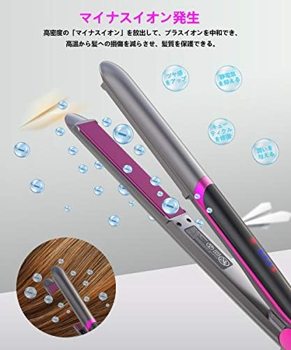 ✿【25mm プレート&急速加熱&高密度マイナスイオン】プロ仕様のセラミックプレートが搭載しております。滑りが良く、耐久性や熱伝導にも優れており、素早く均等に熱を伝えます。25mm プレートのデザインで短時間でツヤサラに仕上がります。立ち上がりが早い、忙しい朝や時間ない時も最適です。新しいマイナス噴射機能を搭載して、高密度マイナスイオンを放出して、プラスイオンを中和できて、髪の水分蒸発を軽減し、熱からのダメージを最小限にします。