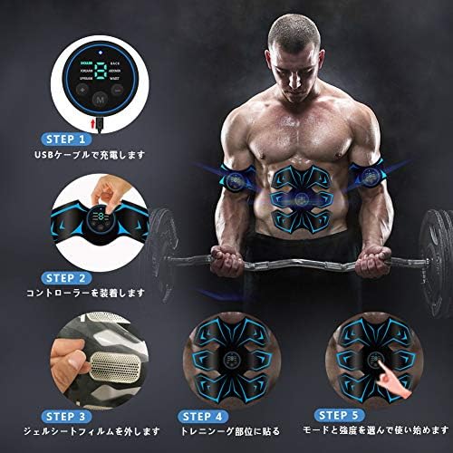 【品質保証】保証付き、万が一不具合が御座いましたら、ご遠慮なくご連絡ください、ちゃんと対応いさせていただきます。セット一覧:腹筋ベルト*1、腕ベルト*2、コントローラー*3、USBケーブル*1、ジェルシート*10、日本語取扱説明書*1。