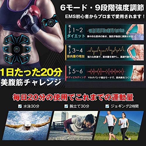【優秀なダイエット効果】腹筋ベルトで20分の簡単エクササイズはジョギング2.5km、腹筋鍛え30分または自由水泳30分に相当します。脂肪燃焼ダイエット(初)から筋力増強(中)またボディビルディングの構築(高)まで、6種モードと9段階強度調節も備えています。自分に合った強度に調節でき、いつでもどこでも筋肉に最適な運動効果を与えられます。安全性や静音性に優れる腹筋器具で疲労回復にも効果があります。