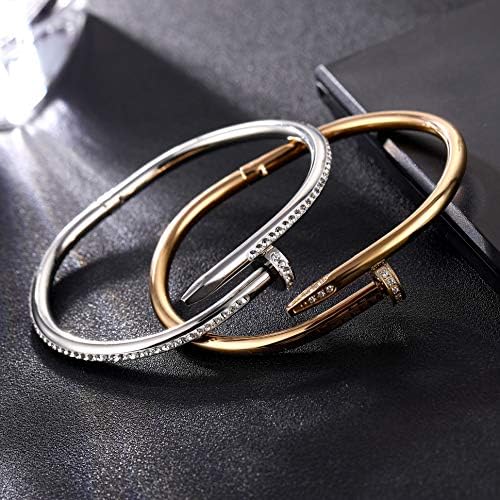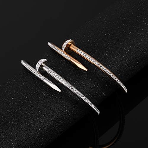 【4色釘 モチーフ バングル】チタンスチールダイヤモンドネイルシェイプバングルブレスレット、腕輪 、レディースステンレススチールカフバングルブレスレット、バレンタインデー、母の,直径60cm/ 23.6インチ, Sliver