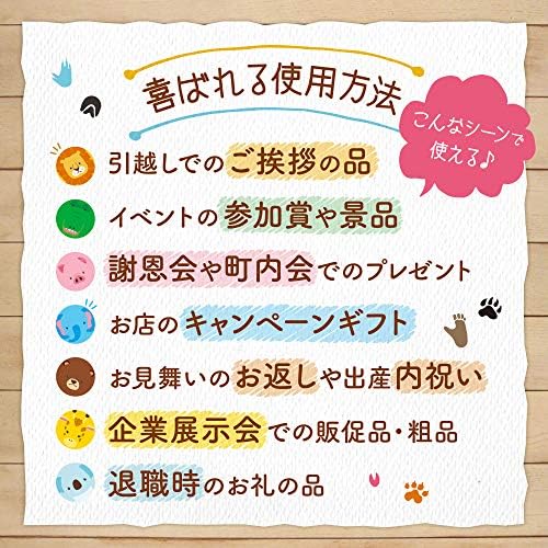子どもがいるご家庭や女性へのお返し、おひっこし挨拶の粗品をはじめ、内祝い、結婚式の二次会、イベントのノベルティー、展示会のプチギフト、会社イベントの賞品、キャンペーンでの粗品としても大人気です☆