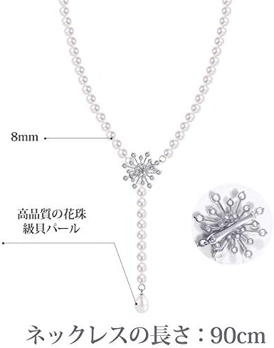 [商品の内容]天然貝パールの8mm珠95粒と5Aキュービックジルコニアの一輪の花の組合せは生き生きとした美しさを演じ、一端の水滴型パールは驚くほど完璧な飾付けです。