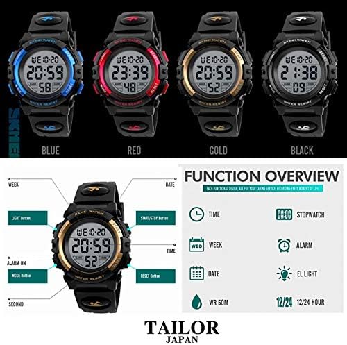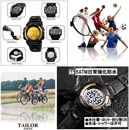 【仕様⑤】機能:①アラーム②ストップウォッチ③防水設計④LED ライト⑤12/24 時間制⑥日付曜日表示⑦大字表示*日本語説明書付き 【規格】ケース直径:約43mm ケース厚み:約17mm バンド長:約160-230mm調節可能 本体重さ:約50g *クリーン環境保護の為、簡易的な梱包でのお届けになります。*海外製の為、若干の誤差がある場合があります。