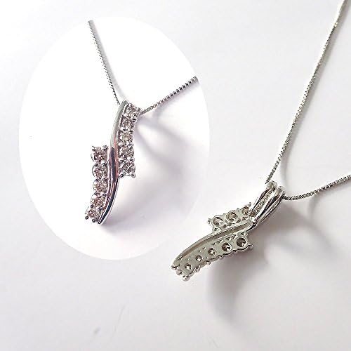 5石ずつ計10石のラインが中央に行くほど大きく太くなるグラデーション配列で、胸元で透明感のある煌きを放ちます。