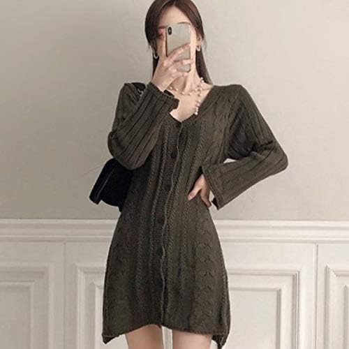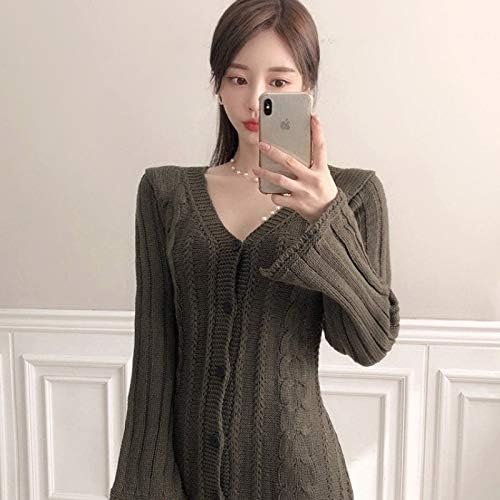 ざっくりとした着こなしのフロントボタンのニットワンピース