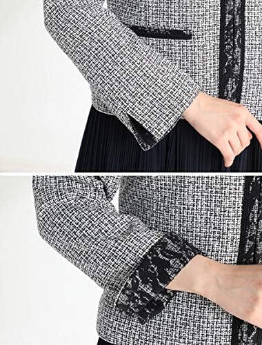 上品なツイード素材で、衿元の花柄レースがフェミニンな印象を演出し、華やかさをアップさせてくれます。