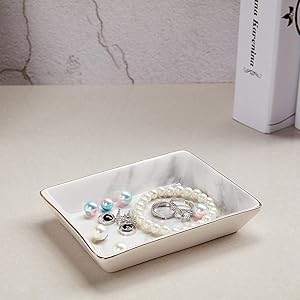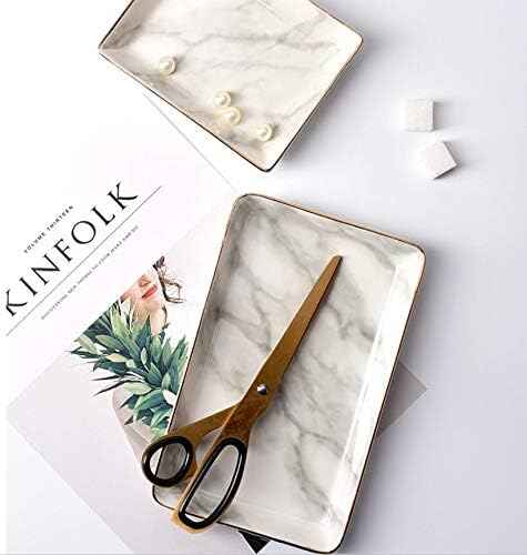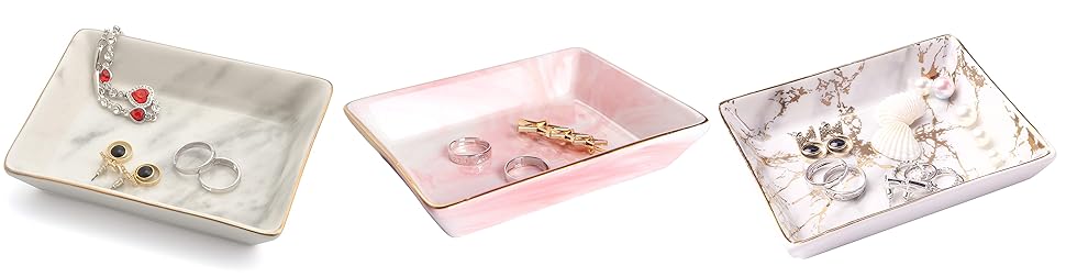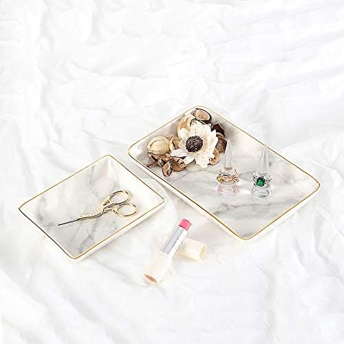 アクセサリートレイ アクセサリー収納 小物入れ ジュエリー収納 ジュエリートレイ 可愛い おしゃれ インテリア 置物 陶器 長方形 大理石模様 S:13.5X10.6X2.3CM グレー