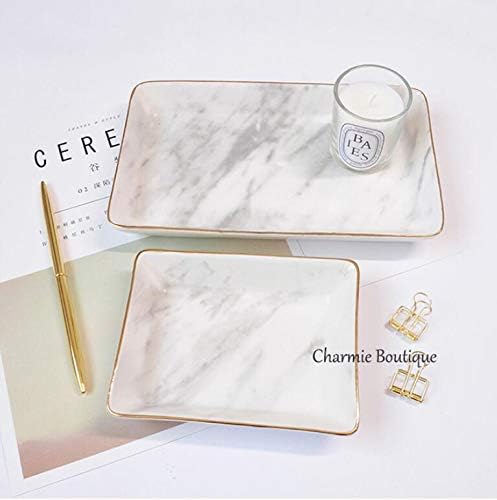 “アクセサリートレイ アクセサリー収納 小物入れ ジュエリー収納 ジュエリートレイ 可愛い おしゃれ インテリア 置物 陶器 長方形 大理石模様 S:13.5X10.6X2.3CM グレー” の口コミを投稿します
