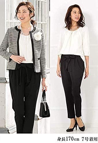 入学式・卒業式や七五三・お宮参りなどセレモニーに適したレディーススーツです。鮮やかな配色ツイードのジャケットと、花柄レースが可憐な半袖トップス、ウエストゴム仕様でストレッチの効いたテーパードパンツのセットです。