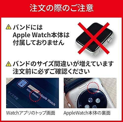 サイズ:Apple Watch 38mm/40mm(手首周り約140mm~180mm) Apple Watch 42mm/44m (手首周り約150mm~190mm) ※42mm/44mmタイプは、バンドが長くなっておりますのでご注意ください。