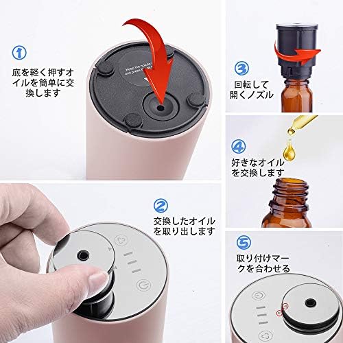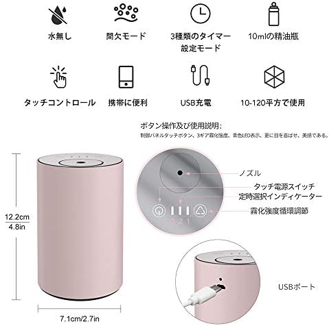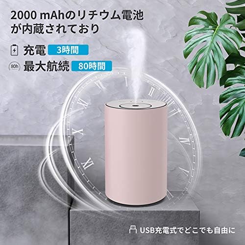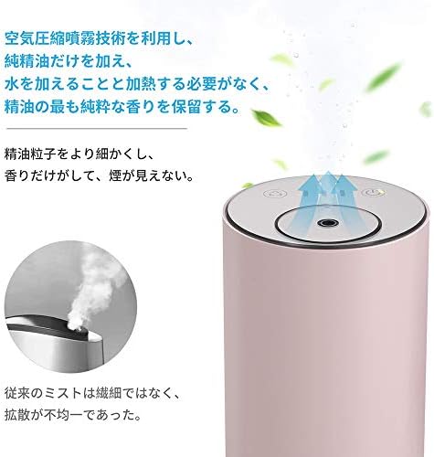 ワイヤレス携帯:2000 mAhのリチウム電池が内蔵されており、USBで3時間充電するだけでバッテリー駆動80時間もできる,低燃費:10mlのオイルボトルでは70時間使える,ボトルの切り替え:10mlの精油瓶と互換性があり、精油の機能に合わせて精油を簡単に切り替えられる,噴霧ノズルは取り外し可能であり、直接に水またはアルコールで洗うことができる。