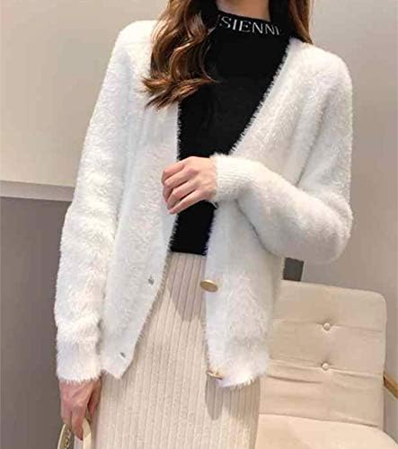 ふんわりとした毛足の長いシャギーがコーディネートをガーリーにまとめてくれるVネックカーディガンです。