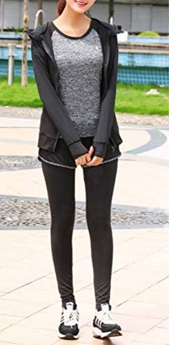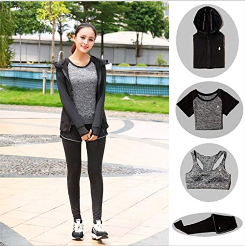 フィットネスやヨガにぴったり! パーカー+半袖Tシャツ+スポーツブラ+レギンス付きショートパンツの4点セット!