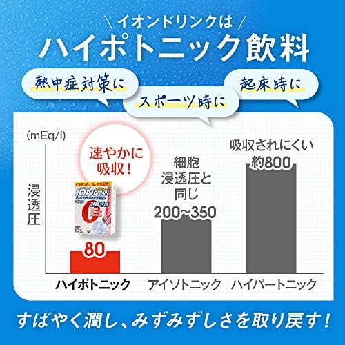 浸透圧80 mosm/Lのハイポトニック飲料です。水やお茶に含まれない電解質が含まれますので、水分吸収効率が良く、熱中症対策にも。しかも糖類は含まれていないので糖類摂取を控えている方におすすめです。