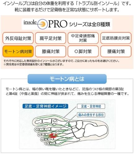 インソールプロ「モートン病対策」は、痛みの発生しやすい中指と薬指の付け根部分を横アーチパッドでサポートします同時に3つのアーチパッドで足の基本骨格を守ります