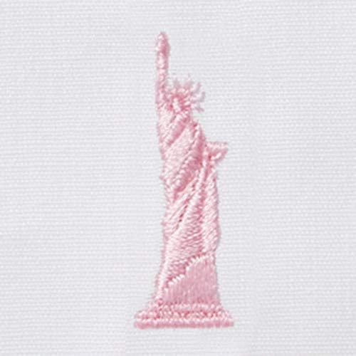 定番の形の白シャツがモイストキュア加工で登場。シワになりにくくお手入れ簡単です。襟元の開き具合をバランスよく調整しています。メンズシャツと同様の立ち襟仕様。首のラインに添って襟元がすっきり見えるのが特徴で、ネクタイやリボンも美しく決まります。ボタンはオリジナルの「EASTBOY」刻印入り。左胸に女神刺繍入り。