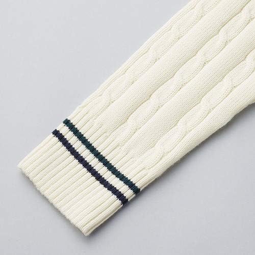 ケーブル編みにラインを配した、大人っぽい印象のトラッドなカーディガン。さらりと着心地のよいハイツイストドライタッチコットンを使用。イーストボーイ独自の仕様で強度をUPしています。●肩のほつれを防ぐ為、通常より長めに糸始末をしています。●リンキング糸にスパン糸を1本入れ、強度を上げています。●袖口リブのリンキング部分には、ほつれを防ぐ為にミシンで縫いを入れています。●ポケットのほつれを防ぐ為、通常より長めに糸始末をしています。●ポケット口の両端にカンヌキを入れて、補強しています。左胸には〈ヴィーナス〉の証、シルバーの女神刺繍入り。
