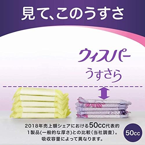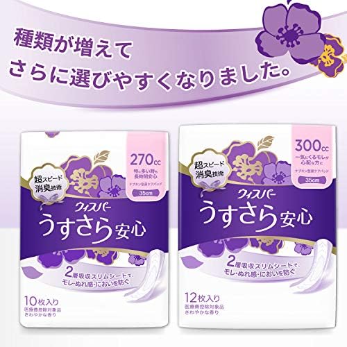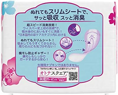 「ウィスパー うすさら吸水 女性用 吸水ケア 50cc 中量用 昼用ナプキンサイズ 38枚入り 24cm 大容量パック (中量の尿モレ用)」は、ぬれてもスリムシートで、サッと吸収 スッと消臭。