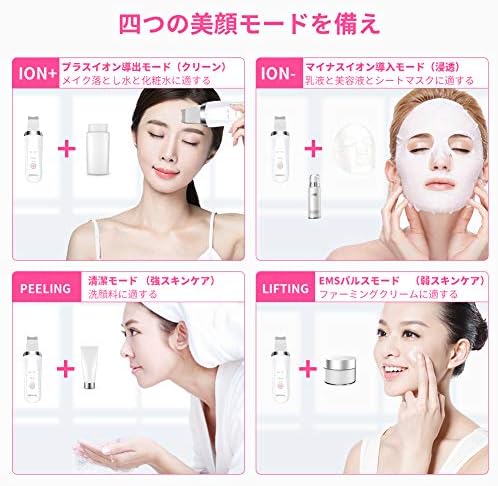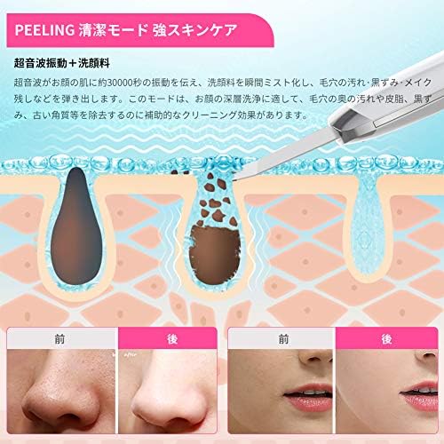 【超音波ピリング&EMSマッサージ】PEELINGは、清潔モードで洗顔料に敵し、超音波振動でお肌についている水分をミスト状にし、毛穴の奥の汚れや皮脂、黒ずみ、古い角質等を除去・洗浄し、肌の奥までクリーニングして肌を明るくします。 LIFTINGは、EMSパルスモードで、EMS微電流を通してお肌に微弱な刺激を与えて、継続的な刺激で顔の筋肉をマッサージします。細胞の修復や活性化がアップし、皮膚表面のたるみ・ほうれい線・むくみ等を改善できます。