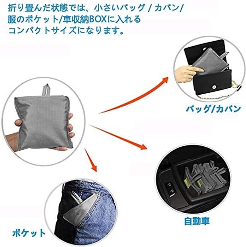 収納ポケットと一体になり、折り畳んで付いたポッケトに収納すると、なんと財布の大きさの持ち運びに便利なコンパクトサイズに。これでバッグやズボンのポッケトや車の中などに入れても邪魔になりません。
